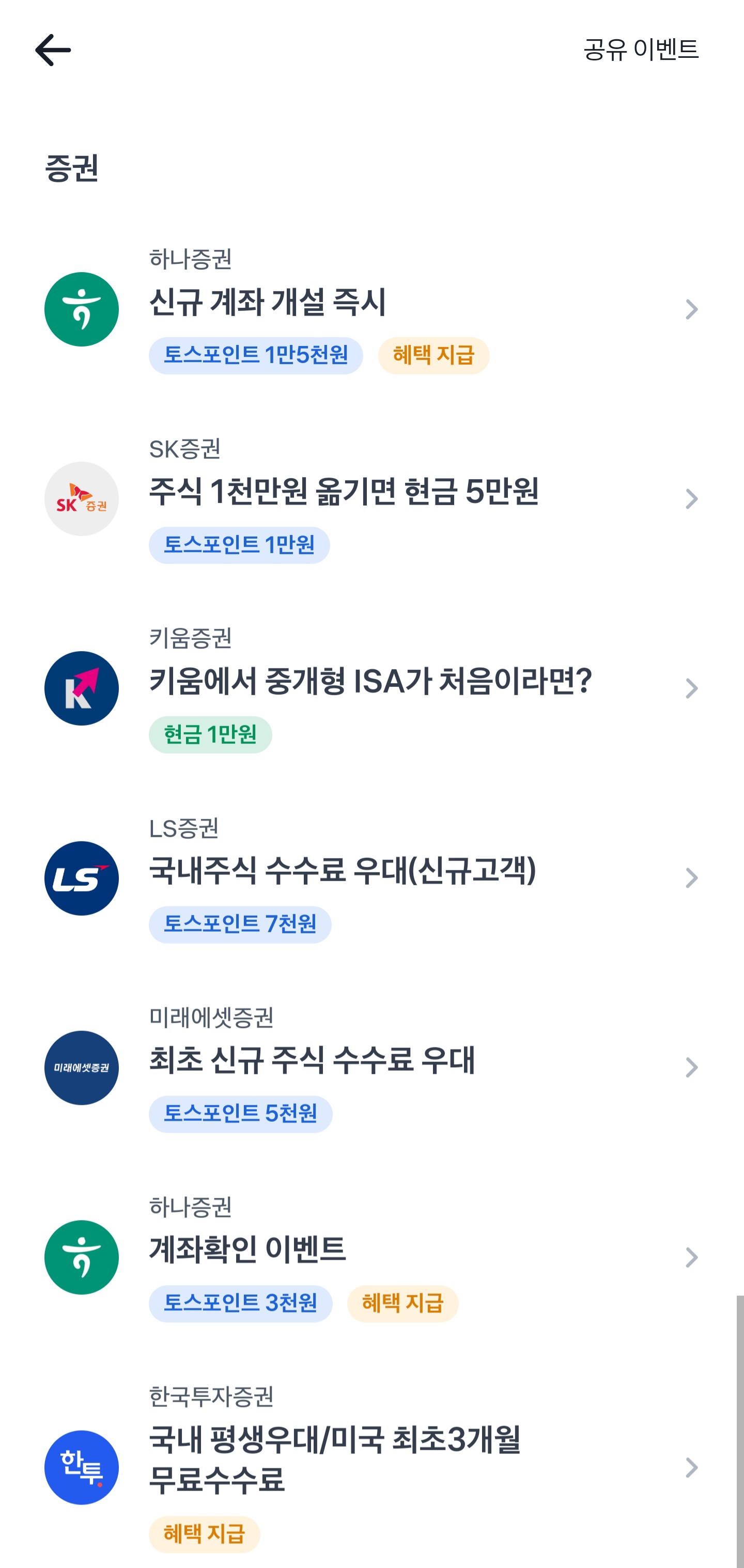 특히 증권계좌 같은 경우는 증권사마다 주식거래 수수료가 천차 만별인데 이런 이벤트를 통해 가입하면 혜택도 있고 수수료 면제라던지 이런 조건들을 필수로 따져보고 가입하는게 좋다