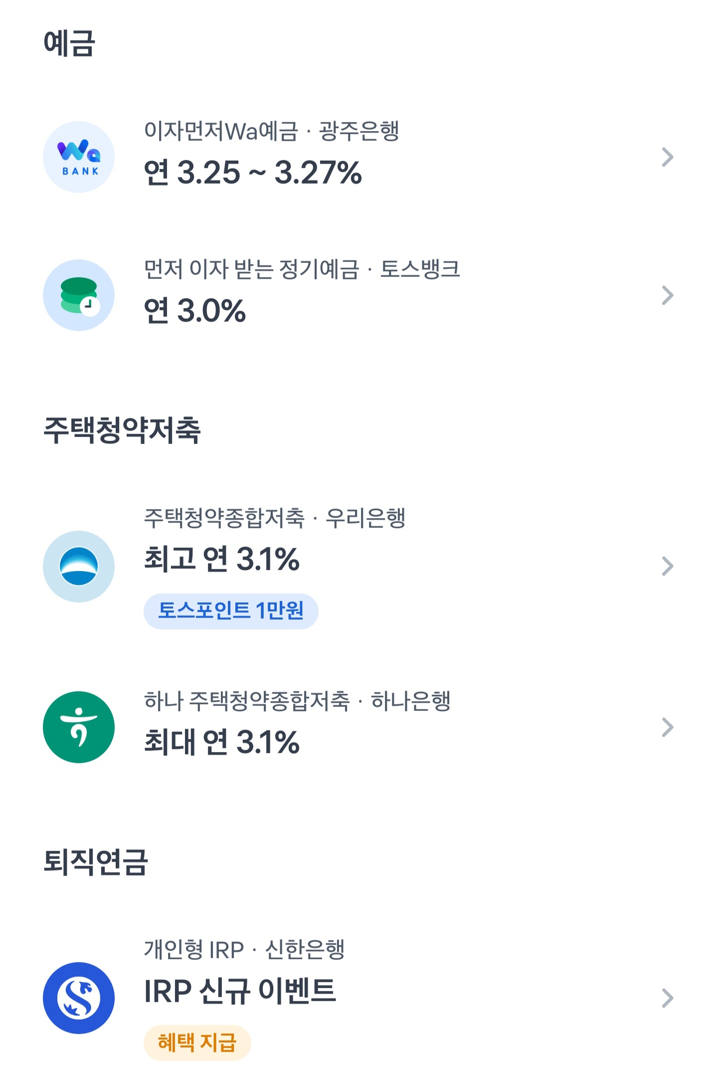 일반 입출금 통장 뿐만 아니라 예금/적금 주택청약 퇴직연금까지도 개설 가능하고