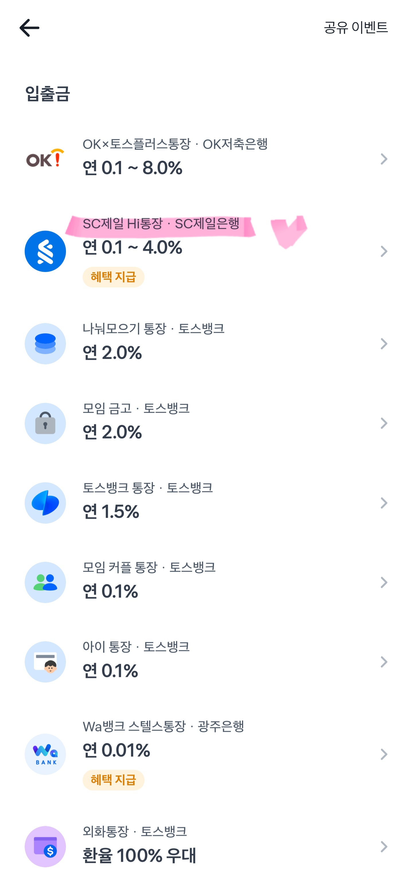 다음에 혜택좋은 계좌나 카드가 나올 경우에 필요하면 이렇게 신규고객이나 혜택 지급 이벤트를 통해 가입해서